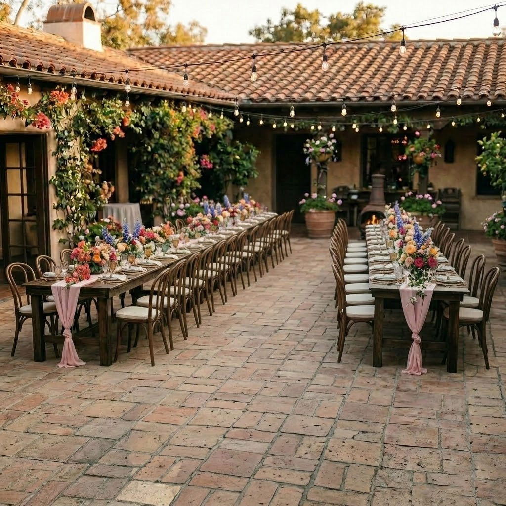 Farm Tables are available for rent in San Diego, CA and Orange County including: Santee, Lakeside, El Cajon, Jamul, Alpine, Ramona, Chula Vista, Tierasanta, Del Mar, & Carmel Valley.