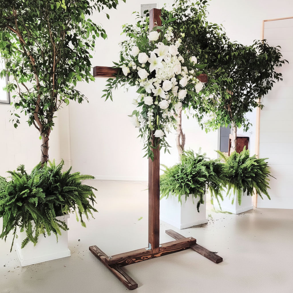 Our Hickory wood cross is beautiful as the backdrop for an isle or additional decoration for your reception area.